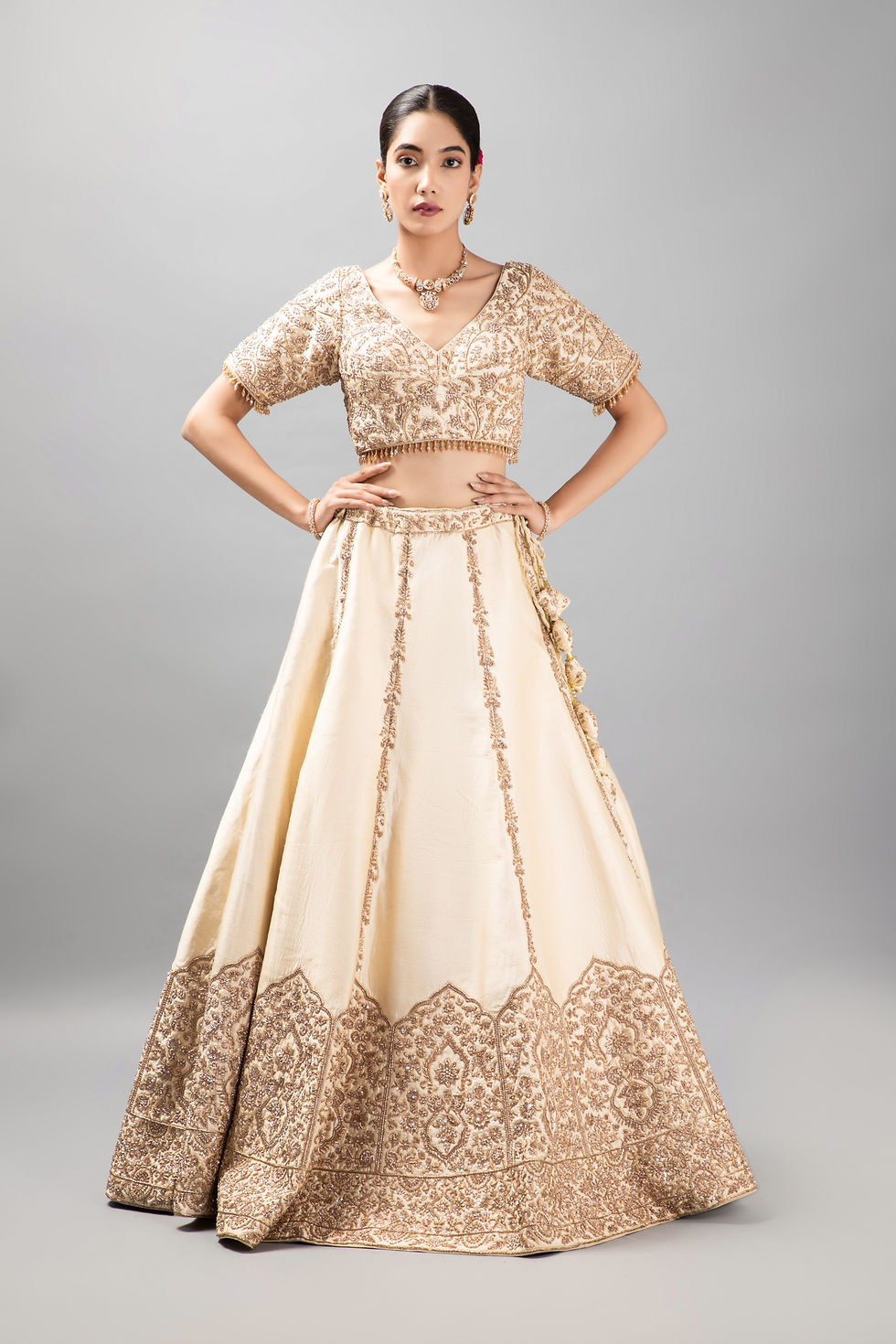 Maroon Zardosi Raw Silk Bridal Lehenga